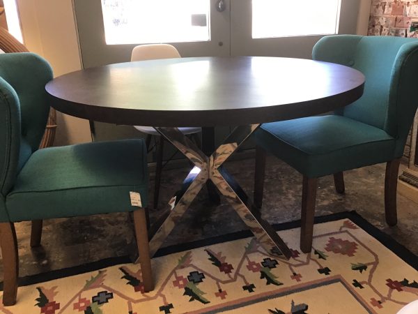 Round Dining Table w/Glass over Wooden table top.  Chrome criss-cross legs.  Super stylish!