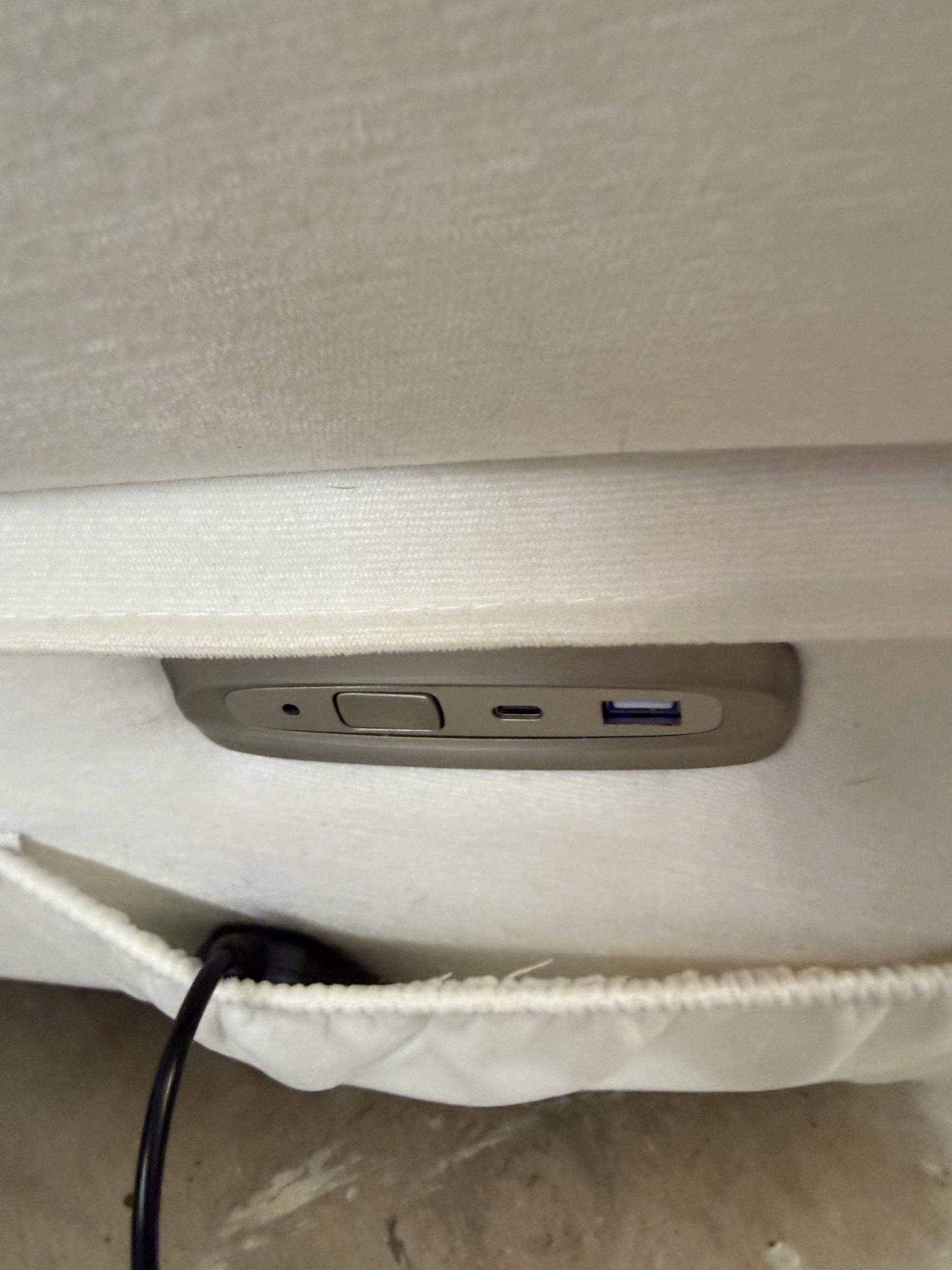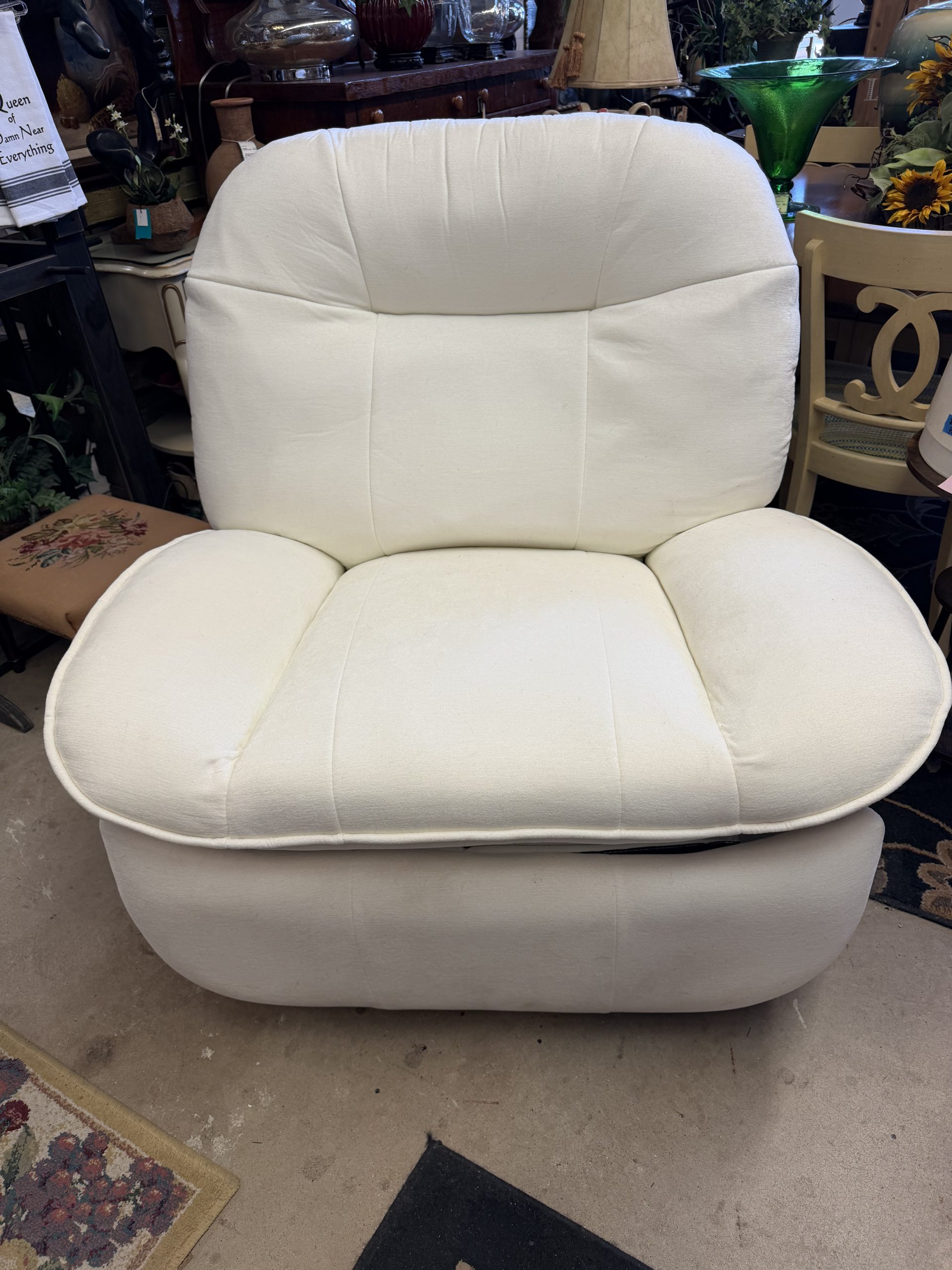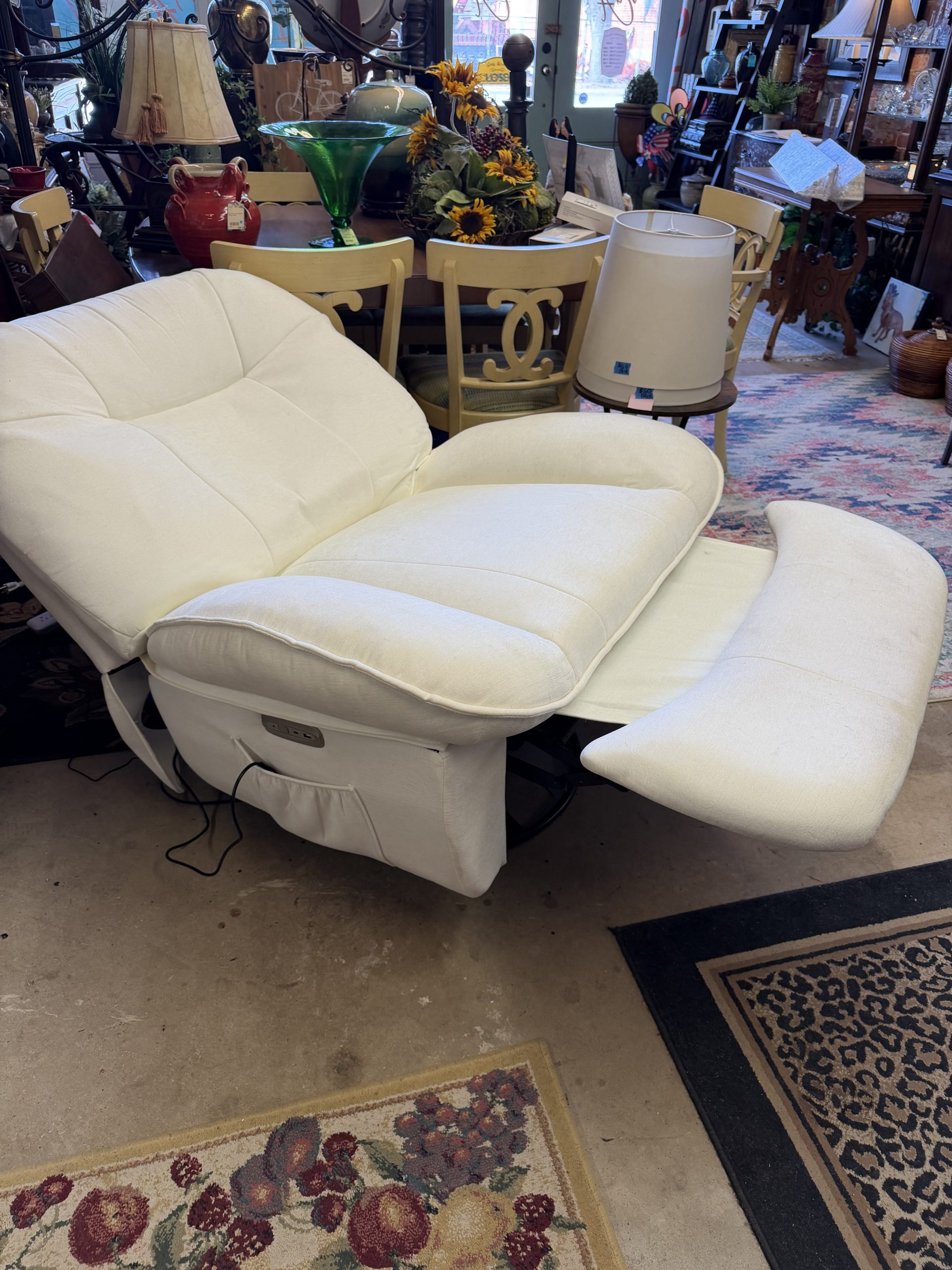 Nearly New White Electric Recliner – Featuring, full tilt back, heat, massage, USB port. Great for Living Room Bedroom or Nursery