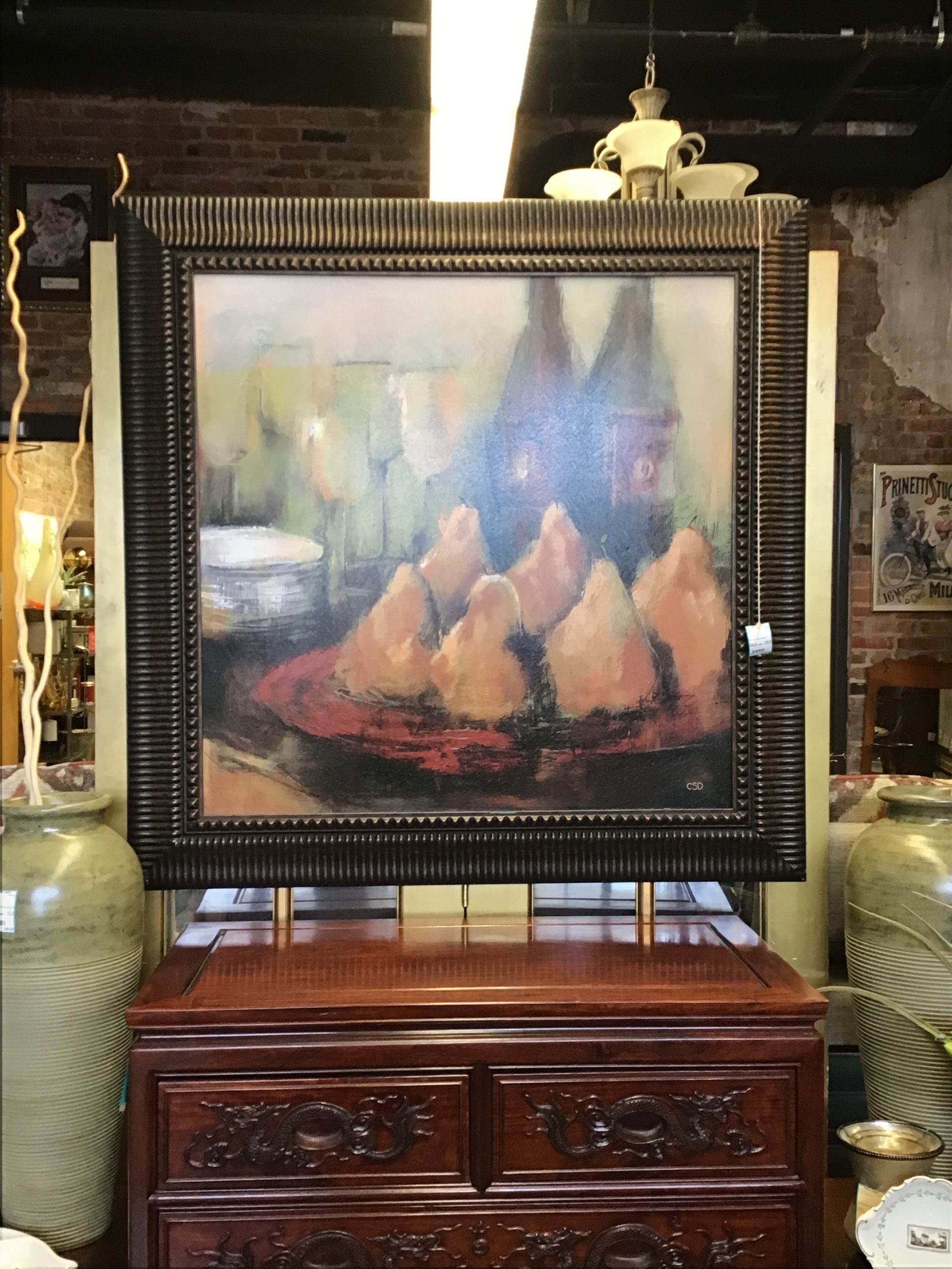 44″ x 45″ Impression of Wine & Pears — Dark Frame